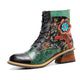 CrazycatZ WomensBoots Bohemian Block Heels Leather Western Boots Colorful Leather Ankle Boots Green