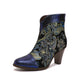 CrazycatZ Hand Made, Bright Color Vintage Design Leather Boots. Patchwork Bohemian Style,Hand Painted Color Leather Ankle Boots.