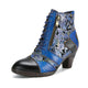 CrazycatZ Hand Made, Bright Color Vintage Design Leather Boots. Patchwork Bohemian Style,Hand Painted Color Leather Ankle Boots.