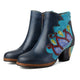 CrazycatZ Womens Boots Floral Block Heel Leather Western Boots Colorful Leather Boots Purple
