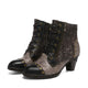 CrazycatZ WomensBoots Bohemian Block Heel Leather Floral Boots Colorful Leather Heeled Ankle Boots Studded Green