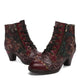 CrazycatZ Womens Boots Bohemian Block Heel Leather Floral Boots Colorful Leather Heeled Ankle Boots Studded Green