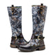 CrazycatZ Womens Leather Knee High Boots Patterned Long Boots Vintage Boots