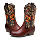 CrazycatZ Womens Leather Bohemian Knee High Boots Patterned Long Boots Vintage Boots Red