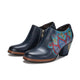 CrazycatZ Leather Block Heel Sandals,Women Leather Bohemian Colorful Sandal Navy