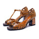 CrazycatZ Women's Leather Mary Jane Shoes Sandals Colorful Summer Shoes with Bow Block Heels pumps Orange Flower